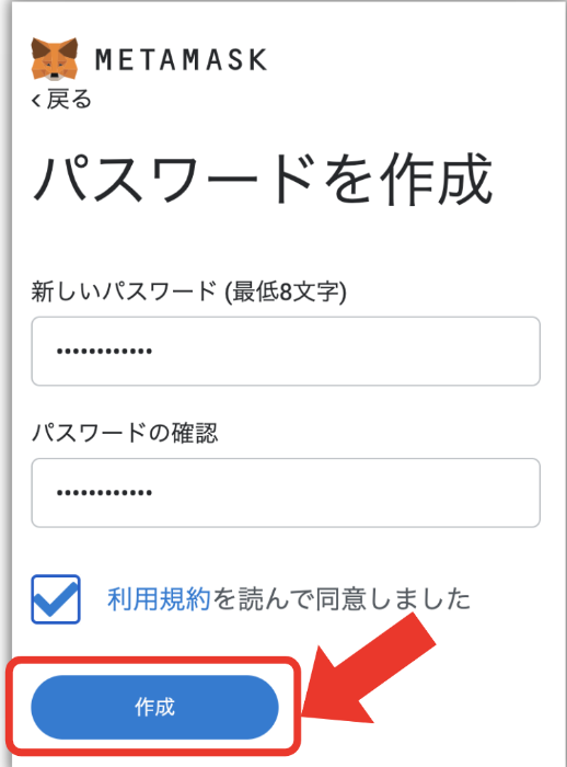パスワード(最低8文字)を設定できたら『作成』をクリック
